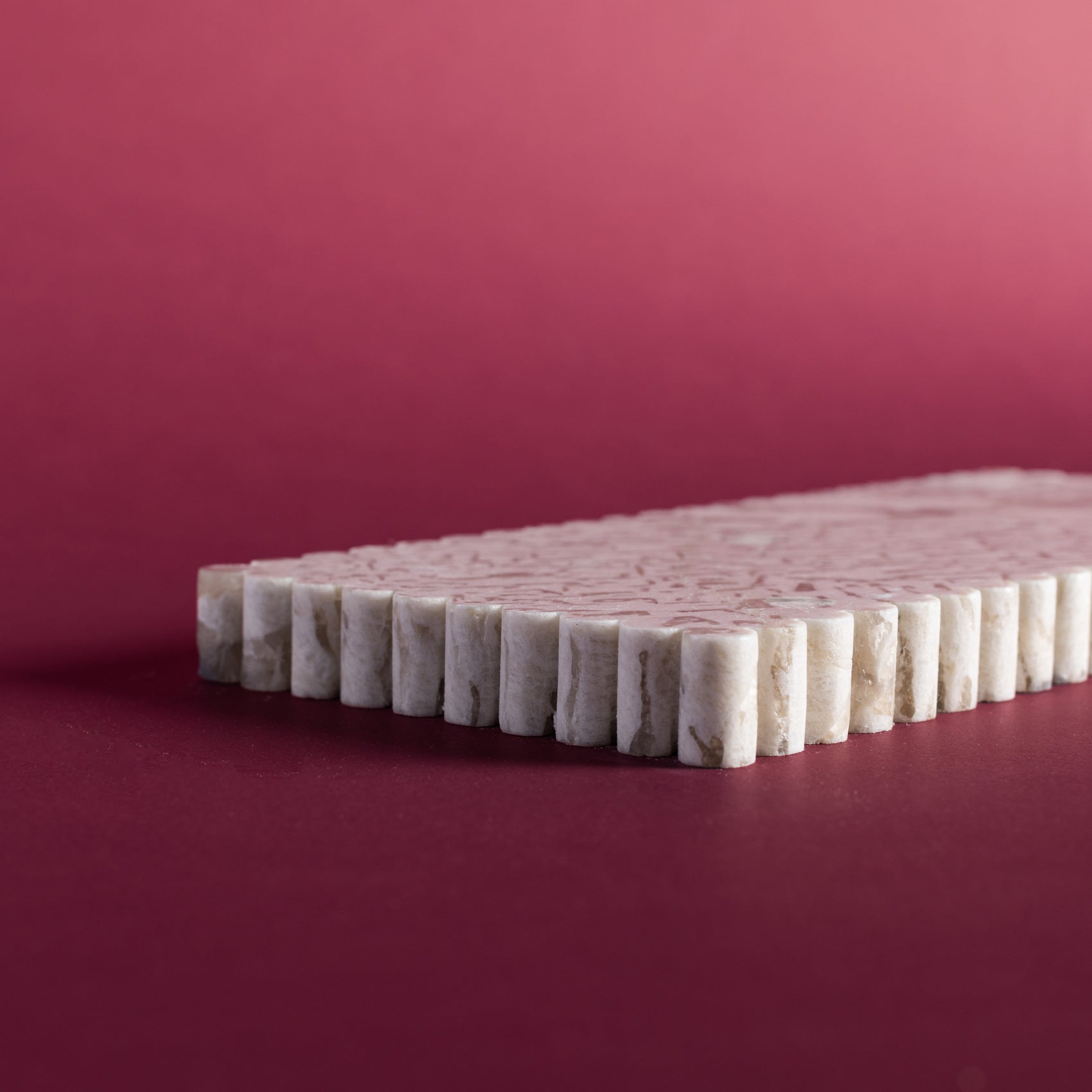 Defined by soft geometry and hand-finished marble, the Meridian Recatangular Tray brings subtle rhythm to everyday settings. Its narrow scallop and natural veining make each piece one-of-a-kind — a quiet presence in any space.