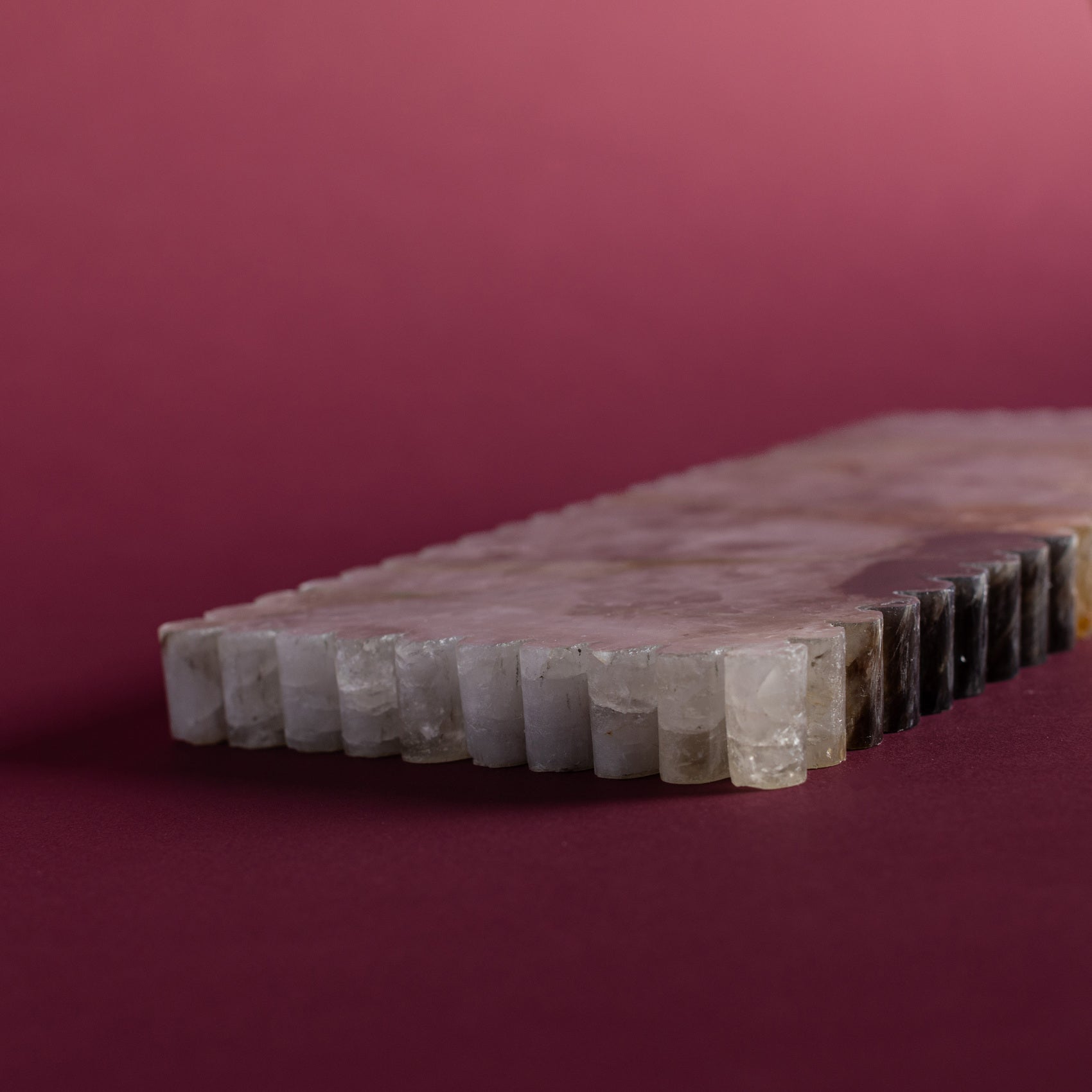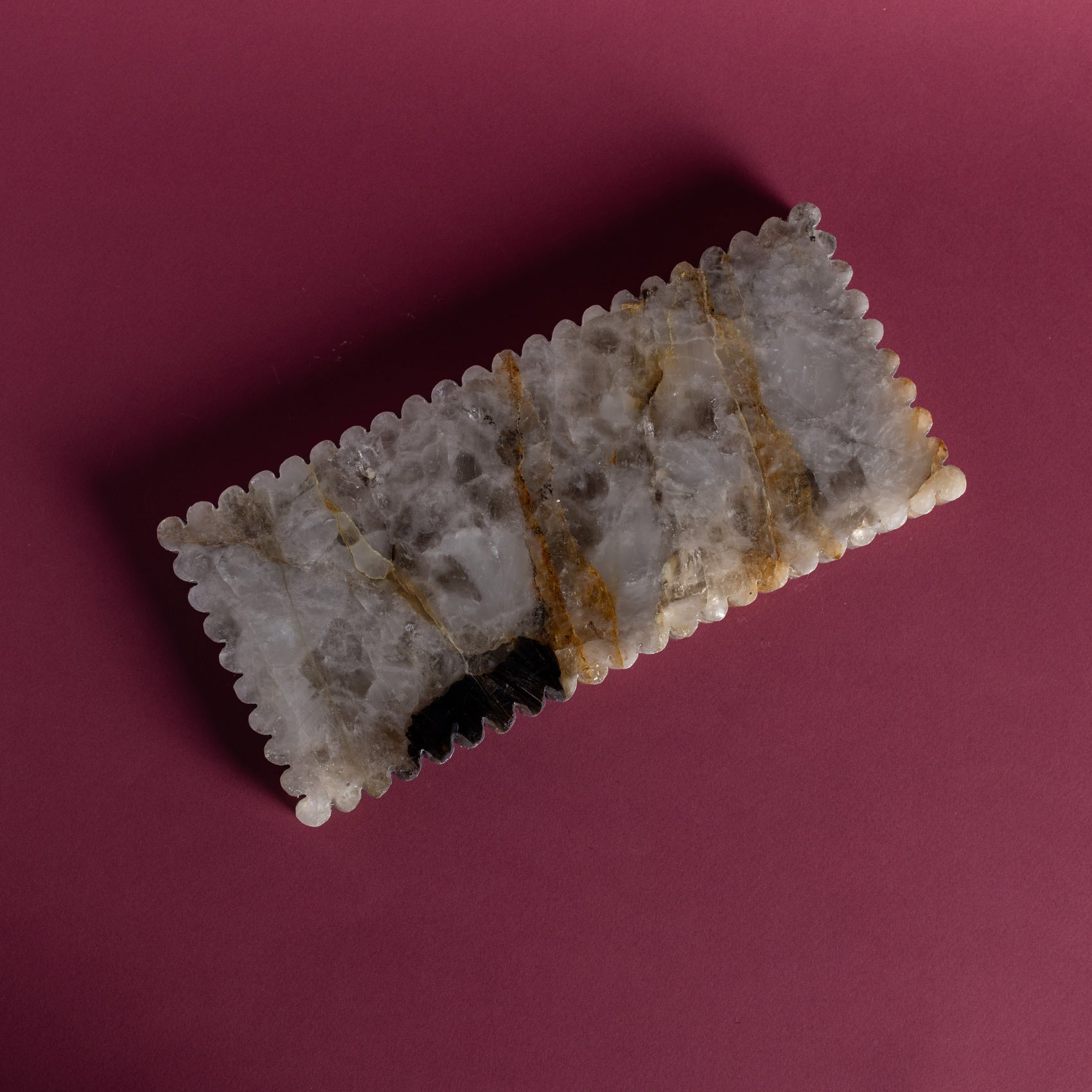 Defined by soft geometry and hand-finished marble, the Meridian Recatangular Tray brings subtle rhythm to everyday settings. Its narrow scallop and natural veining make each piece one-of-a-kind — a quiet presence in any space.